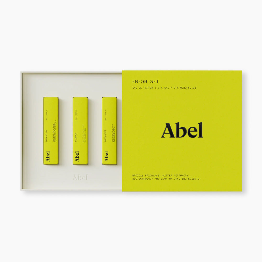 Découvrez le coffret cadeau Abel Fresh : une collection de trois parfums pétillants, présentée dans un élégant coffret ; idéal pour vous-même ou à offrir. Un trio de senteurs fraîches : hespéridées, terreuses et marines. Ensemble, elles forment une collection polyvalente, adaptée à toutes les occasions et à toutes les envies.