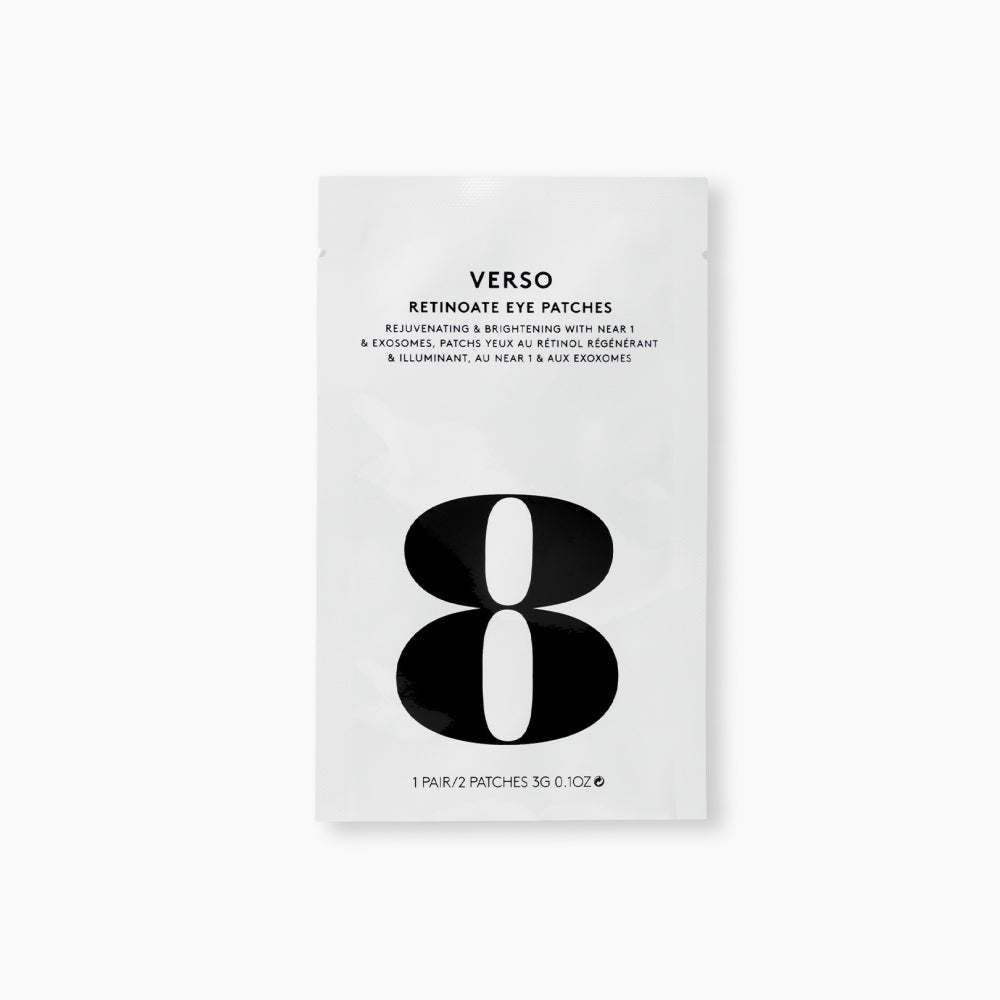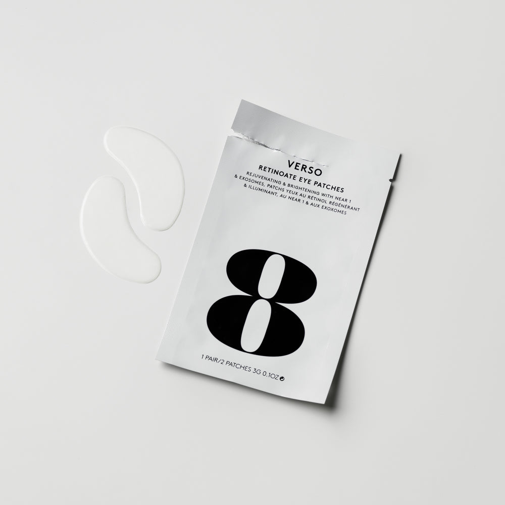 De Verso Retinoate Eye Patches geven je ogen de ultieme opkikker: een krachtige mix van hun gepatenteerde NEAR 1 (niacinamide gecombineerd met een stabiele vorm van vitamine A) en exosomen die samen fijne lijntjes verzachten, de huid rondom de ogen liften en zorgen voor een heldere, frisse uitstraling. Deze innovatieve hydrogel patches dringen diep door, verstevigen de huid, brengen de teint in balans en geven een zichtbaar jonger en uitgeruster uiterlijk. De  luxueuze hydrogel patches hydrateren intens, vervagen kraaienpootjes en verminderen donkere kringen, zodat je er in één blik tot wel tien jaar jonger uitziet. Perfect voor een snelle glowup voor een feestje, een belangrijke meeting of gewoon omdat je huid het verdient. Met de Retinoate Eye Patches van Verso laat je je ogen weer spreken!